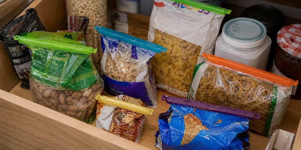 이런 밀봉 클립은 봉지 입구를 길게 잡아주는 쪽이라 그 문제가 덜함. 과자봉지 하나만 보고 사는 물건이라기보다, 파스타, 시리얼, 냉동 야채, 만두, 밀가루 소분 봉지처럼 애매하게 남는 봉지에 더 잘 맞음.